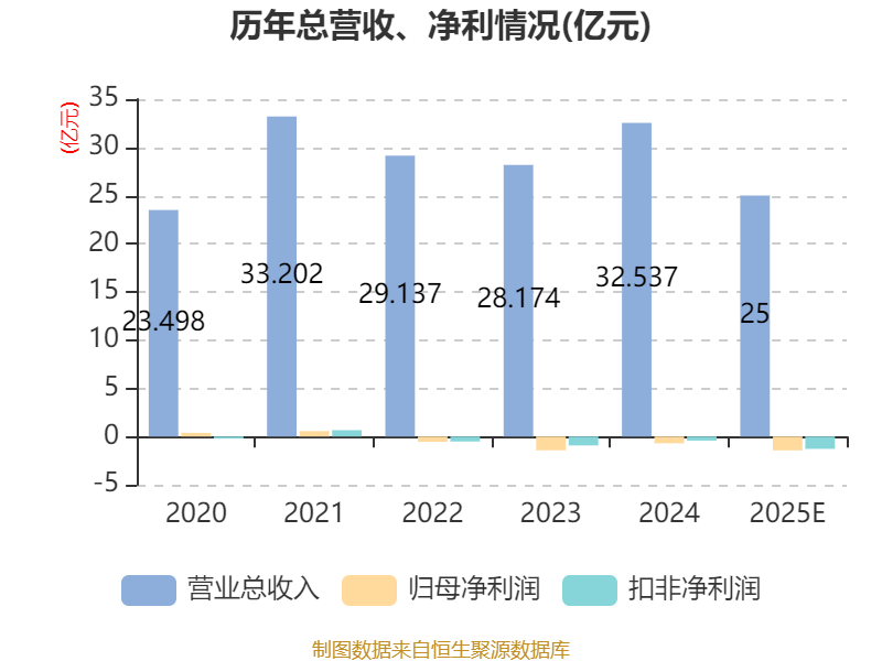 中证智能财讯恒申新材(000782)1月22日晚间披露2025年度业绩预告,预计2025年实现营业收入22亿元至28亿元;归母净利润亏损1.25亿元至1.62亿元,上年同期亏损7023.8万元;扣非净利润亏损1.12亿元至1.43亿元,上年同期亏损4223.54万元;基本每股收益-0.18元/股至-0.24元/股。以最新收盘价计算,市净率(LF)约2.34倍,市销率(TTM)约1.61倍。